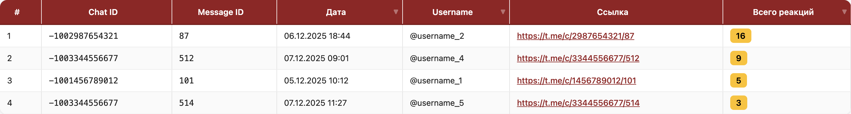 - Все реакции на сообщения фиксируются в режиме реального времени.